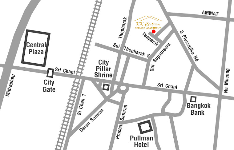 Few-minute walk to City Pillar shrine, Kosa Hotel, Tuk-Com Shopping Mall, Bangkok Bank & Pullman Hotel area with many good bars and restaurants; ten-minute to Central Plaza Shopping mall and City Gate Park.